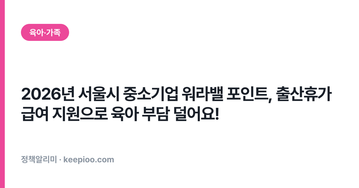 2026년 서울시 중소기업 워라밸 포인트, 출산휴가 급여 지원으로 육아 부담 덜어요!